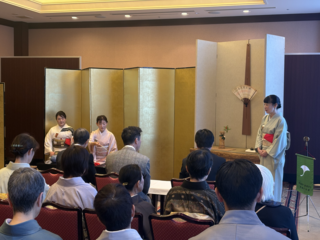 総会の終了後は、お楽しみの懇親会。素敵な景品があたるビンゴ大会は大変な盛り上がりでした。先輩方からも多数の景品をご提供いただき、参加者一同何が当たるかわくわくな時間でした。青年部同士も楽しいひと時を過ごすことができましたが、先生や先輩方とお話する貴重な時間でもありました。令和7年度で卒業生される2名にご出席いただいたき、当日は茶道を始めたきっかけや青年部活動の思い出を聞かせていただきました。
